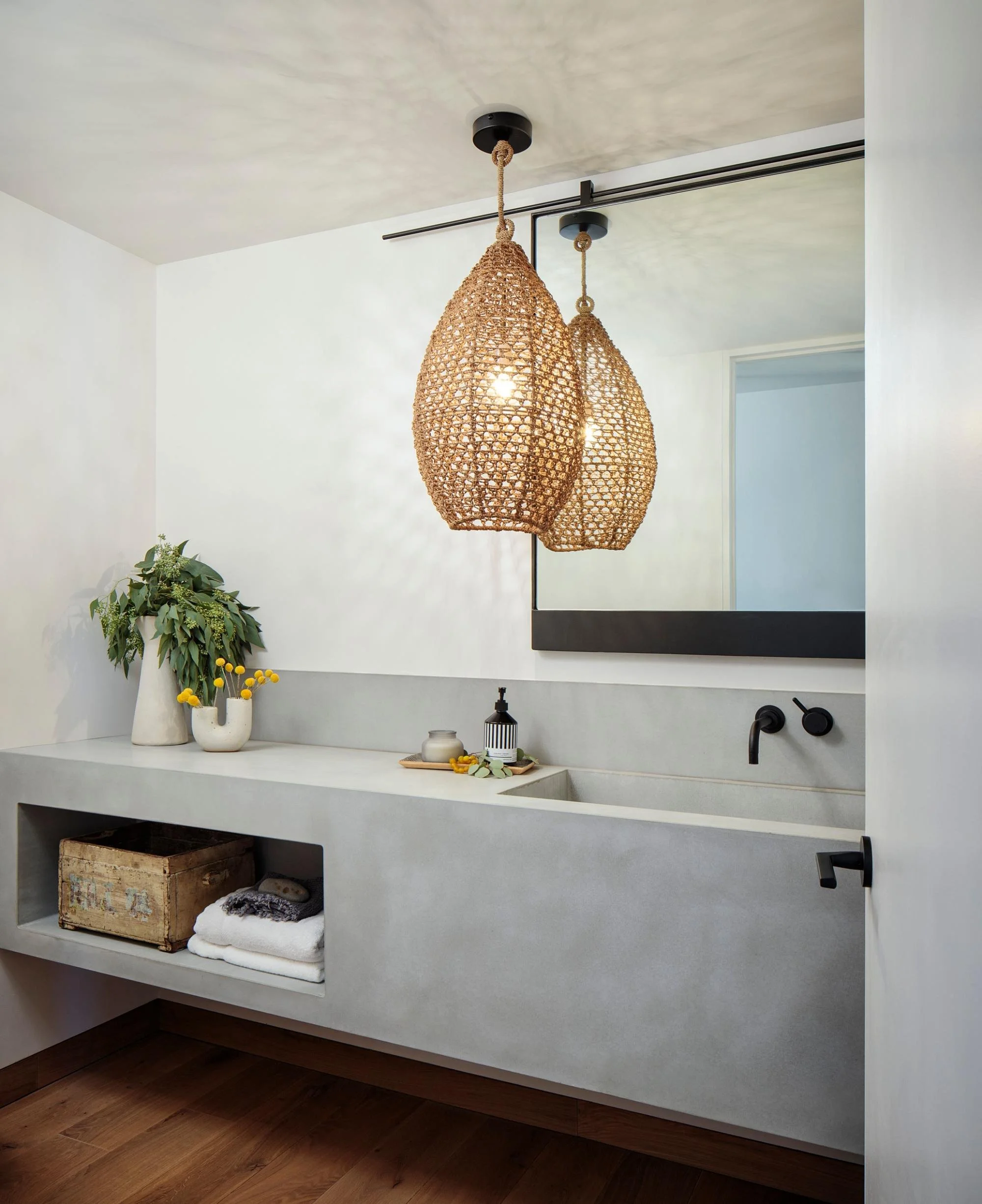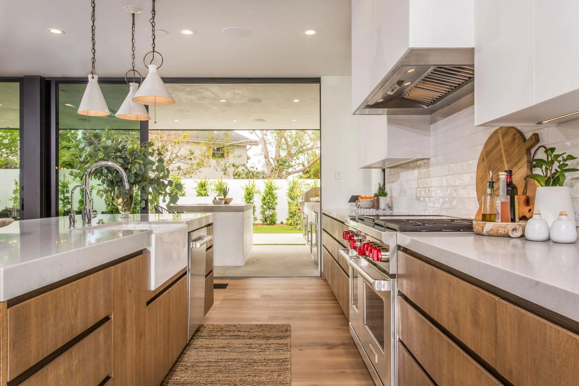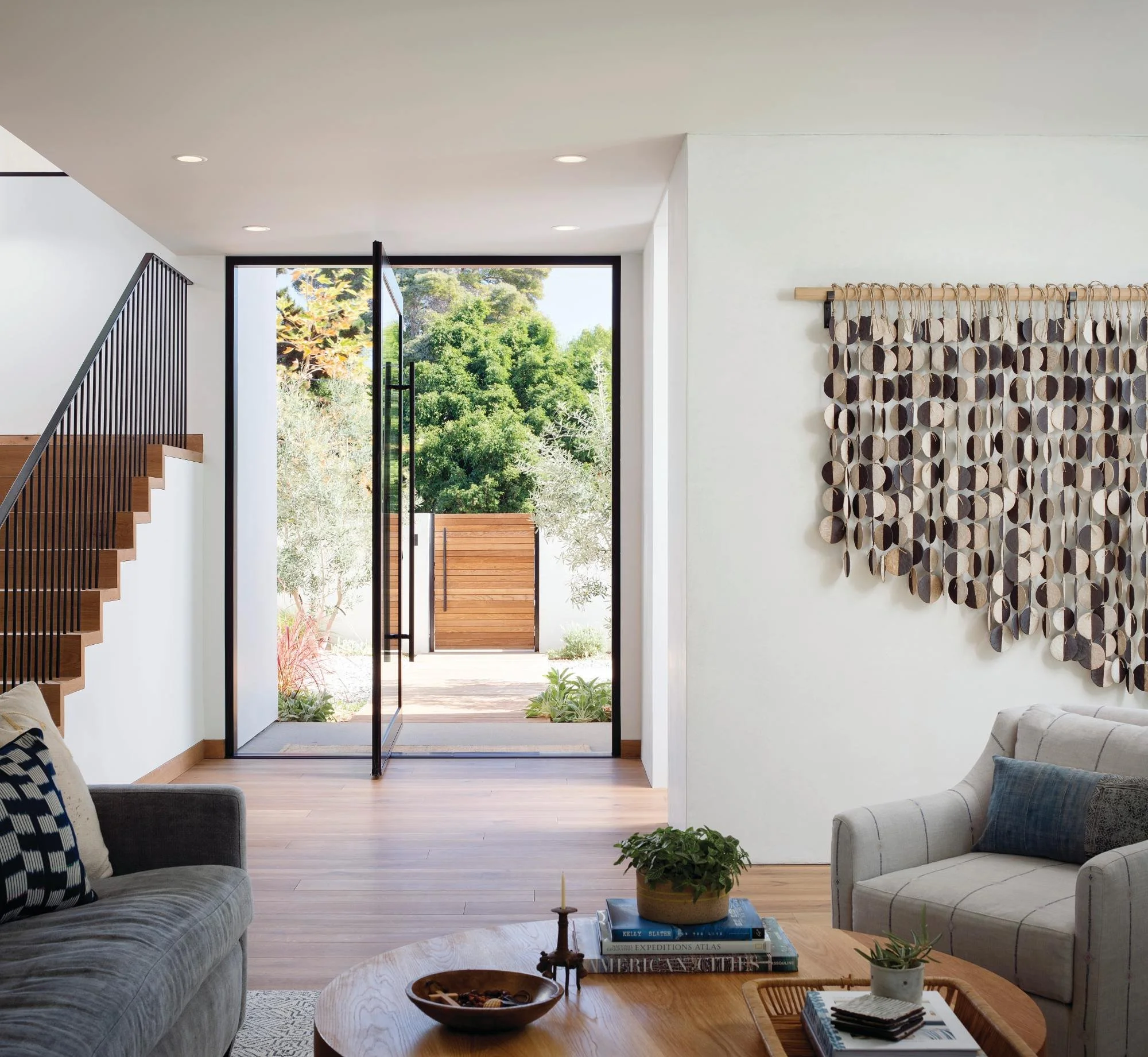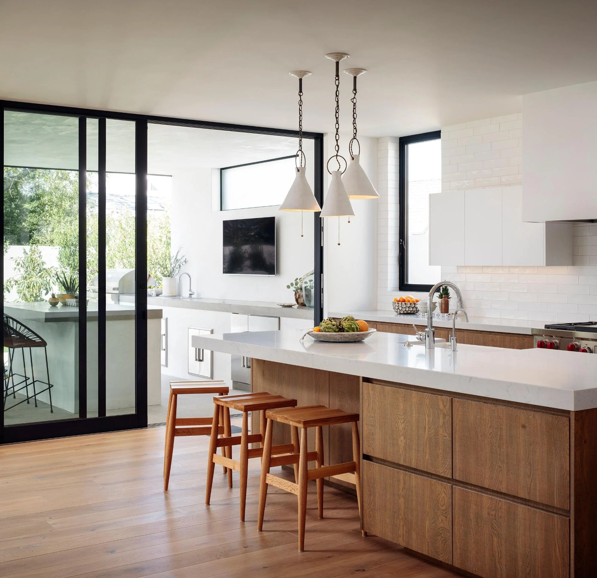 A first-time ground-up build designed as a warm, cohesive family home with true indoor-outdoor flow—made for entertaining, everyday durability, and that effortless “doors open” California lifestyle. A restrained palette of warm woods, concrete, black accents, and soft neutrals carries throughout the house for continuity, while woven textures and organic materials keep it from feeling stark. With a glass-heavy architecture that blurs inside and out, the design focuses on grounded, tactile finishes and timeless, livable choices that hold up to real life—without sacrificing calm, simplicity, or style.