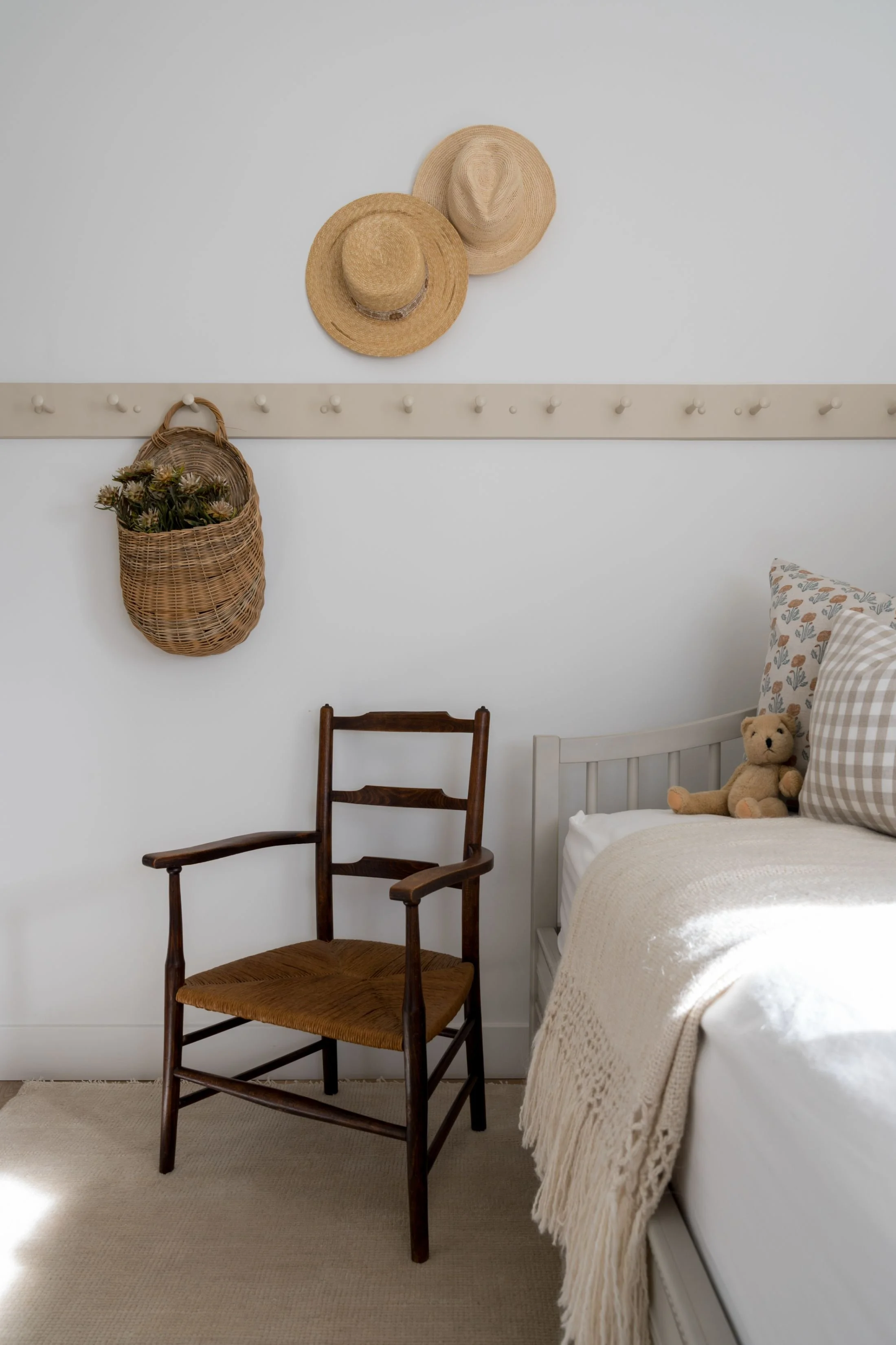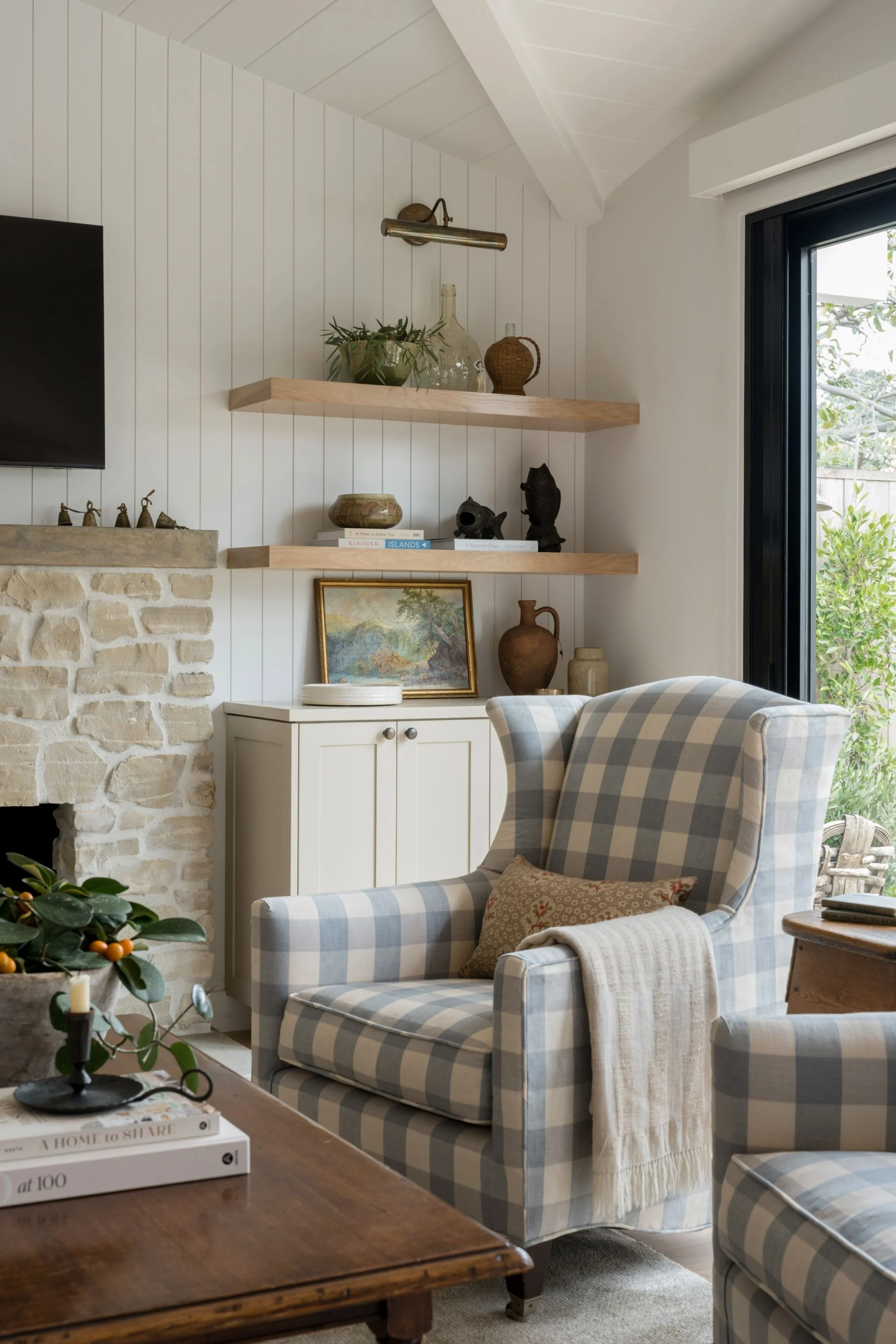 A highly curated home designed with a client who loves detail, finishing touches, and the thrill of the hunt—so much so that sourcing trips became part of the process. The interiors blend custom upholstery, layered pattern and texture, and carefully chosen vintage art and objects, with a signature thread running through every room: subtle orange accents inspired by the client’s love of Mauna Kea in Hawaii. From tailored drapery fabrics echoed in pillows to collected shells displayed like artifacts, the home feels finished but never fussy—deeply personal, beautifully composed, and full of small moments that reward a closer look.