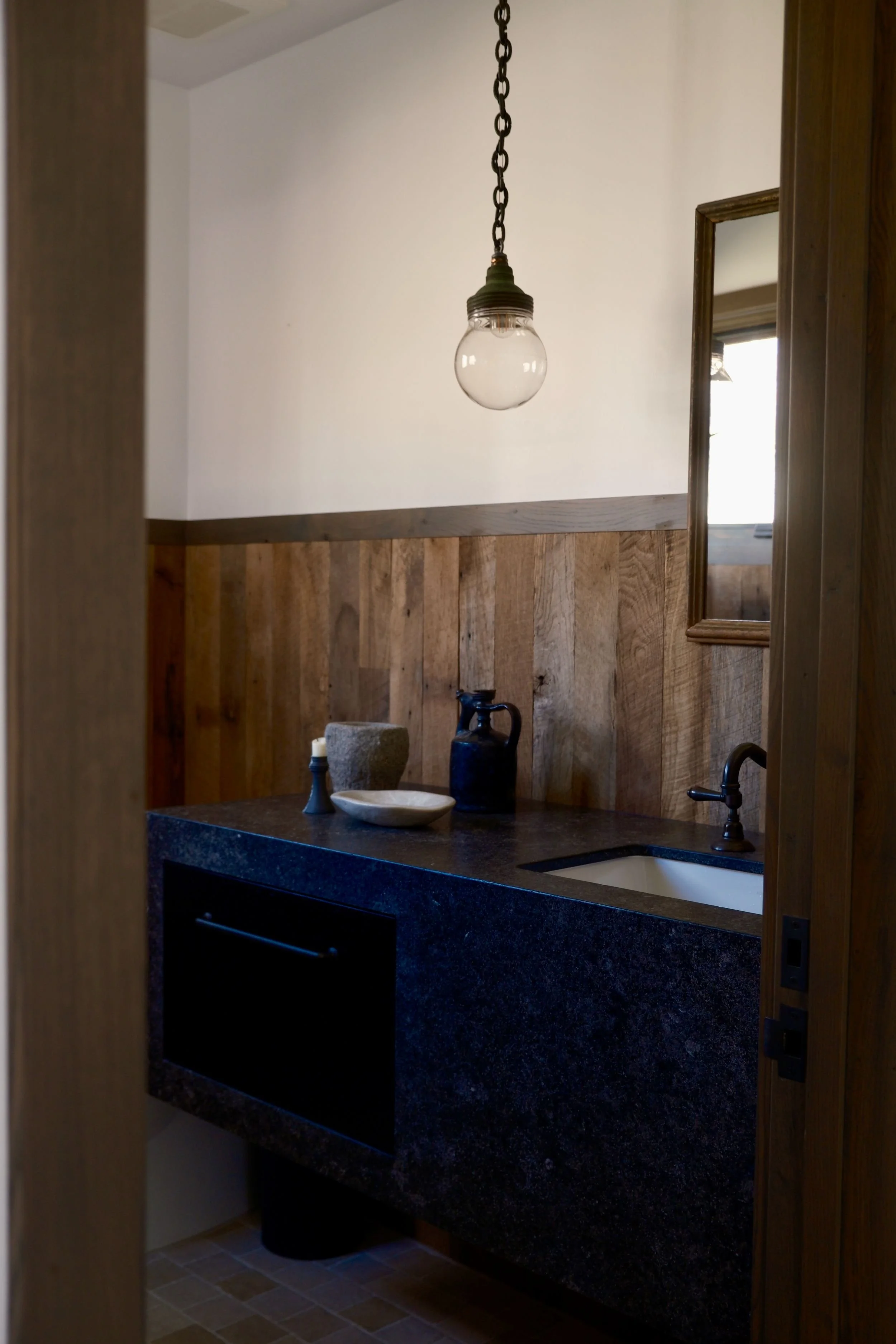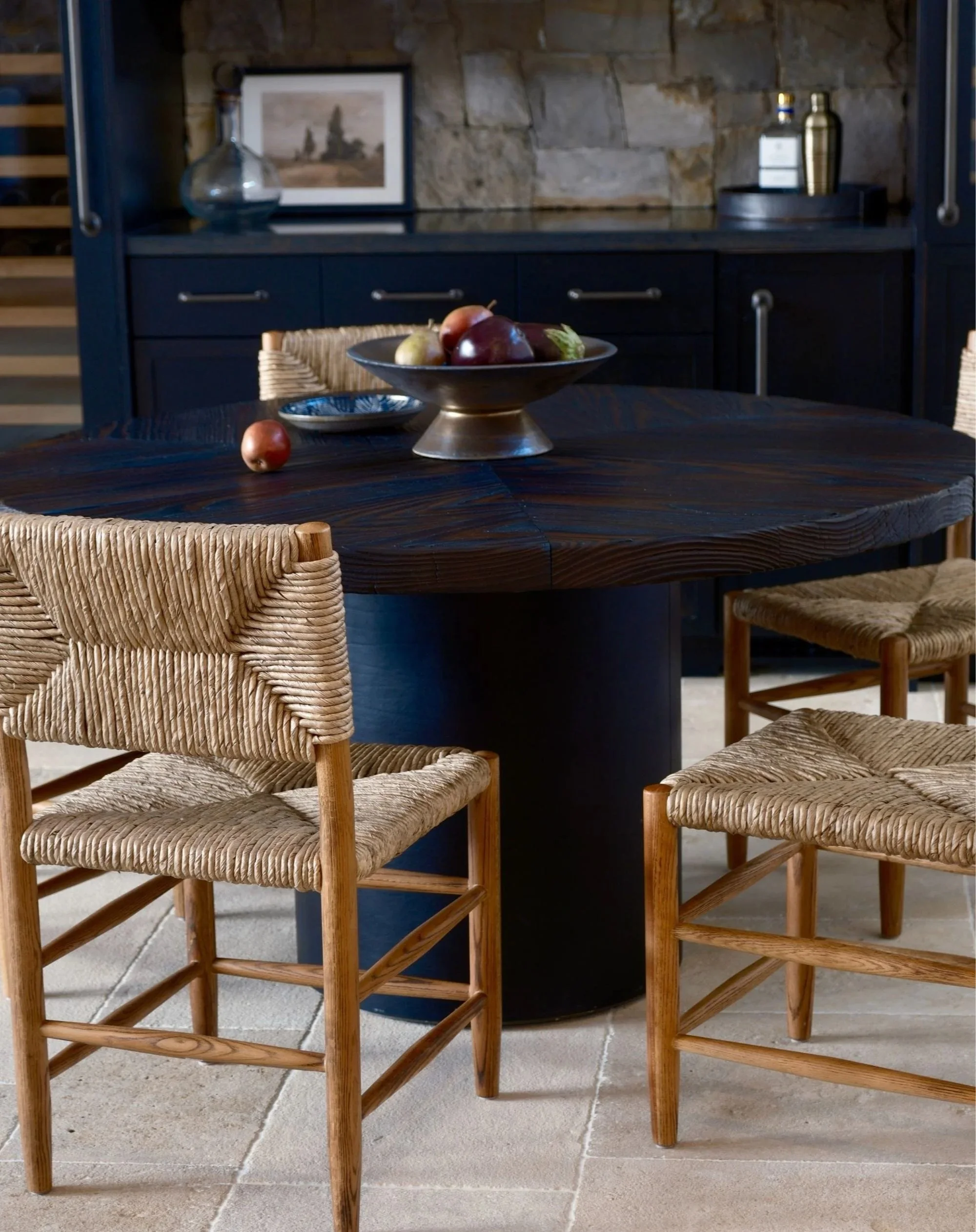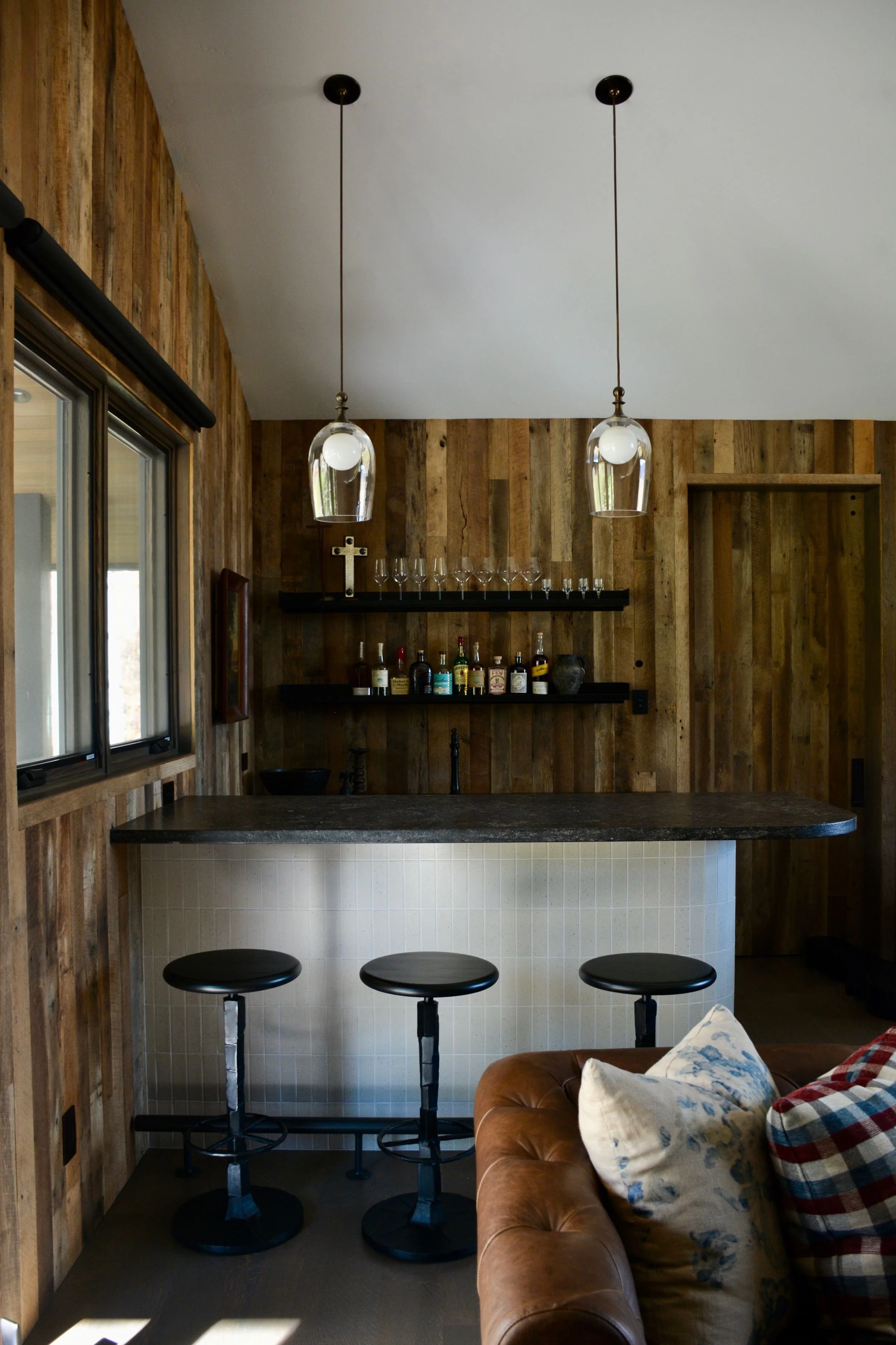 A ground-up, out-of-state mountain home designed from the earliest planning stages—collaborating with the architect to refine details and shaping every finish decision along the way. The goal was rustic modern: clean lines that still feel rooted in place, layered with warm woods, custom upholstery, and a curated mix of antiques shipped in to bring soul and character. Organic, touchable surfaces were key—stone and quartzite were artisan-treated and sandblasted for ridge-like texture that feels as if it was pulled straight from the surrounding landscape, creating a home that’s modern, durable, and unmistakably “of the mountains.”