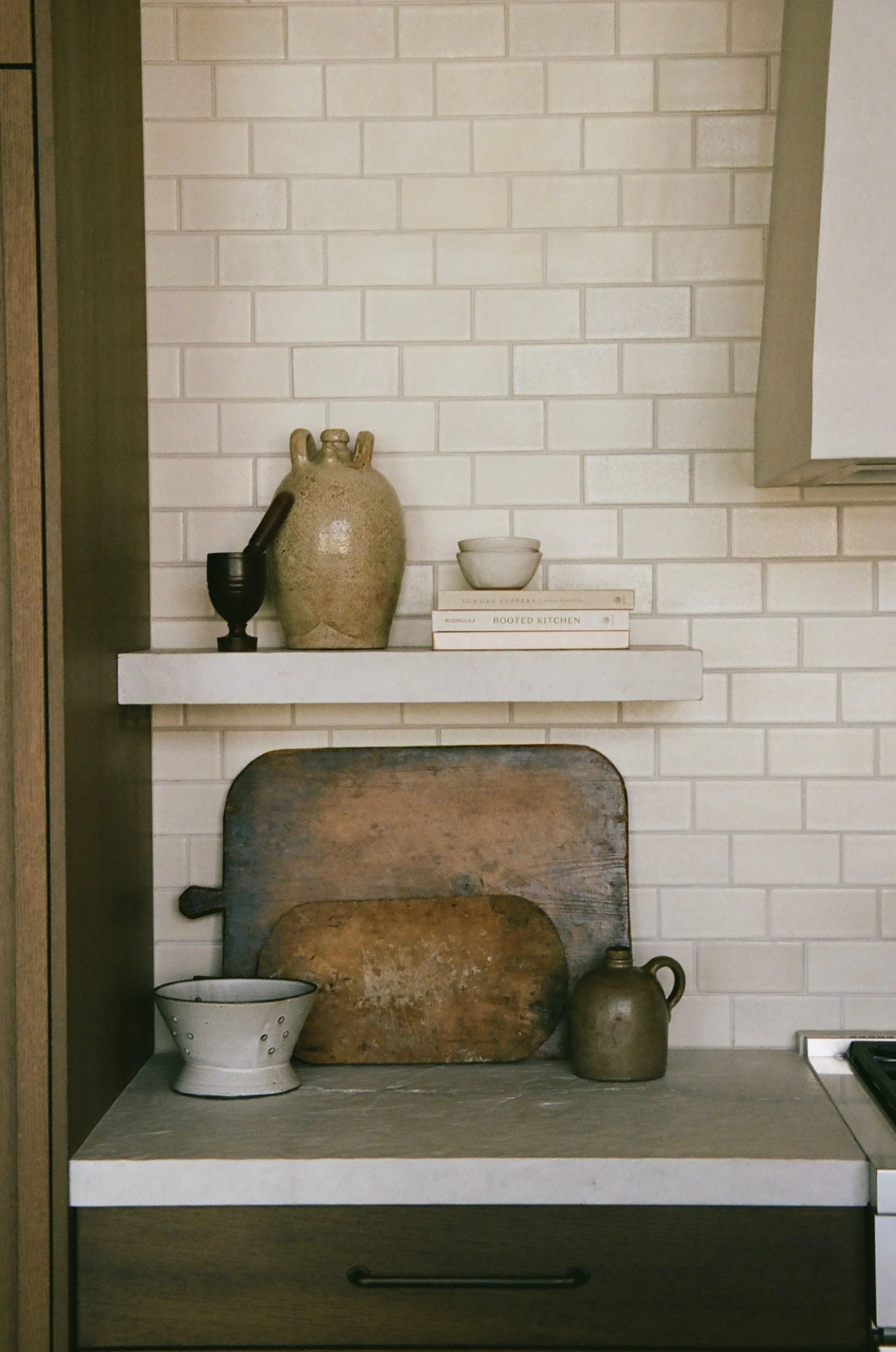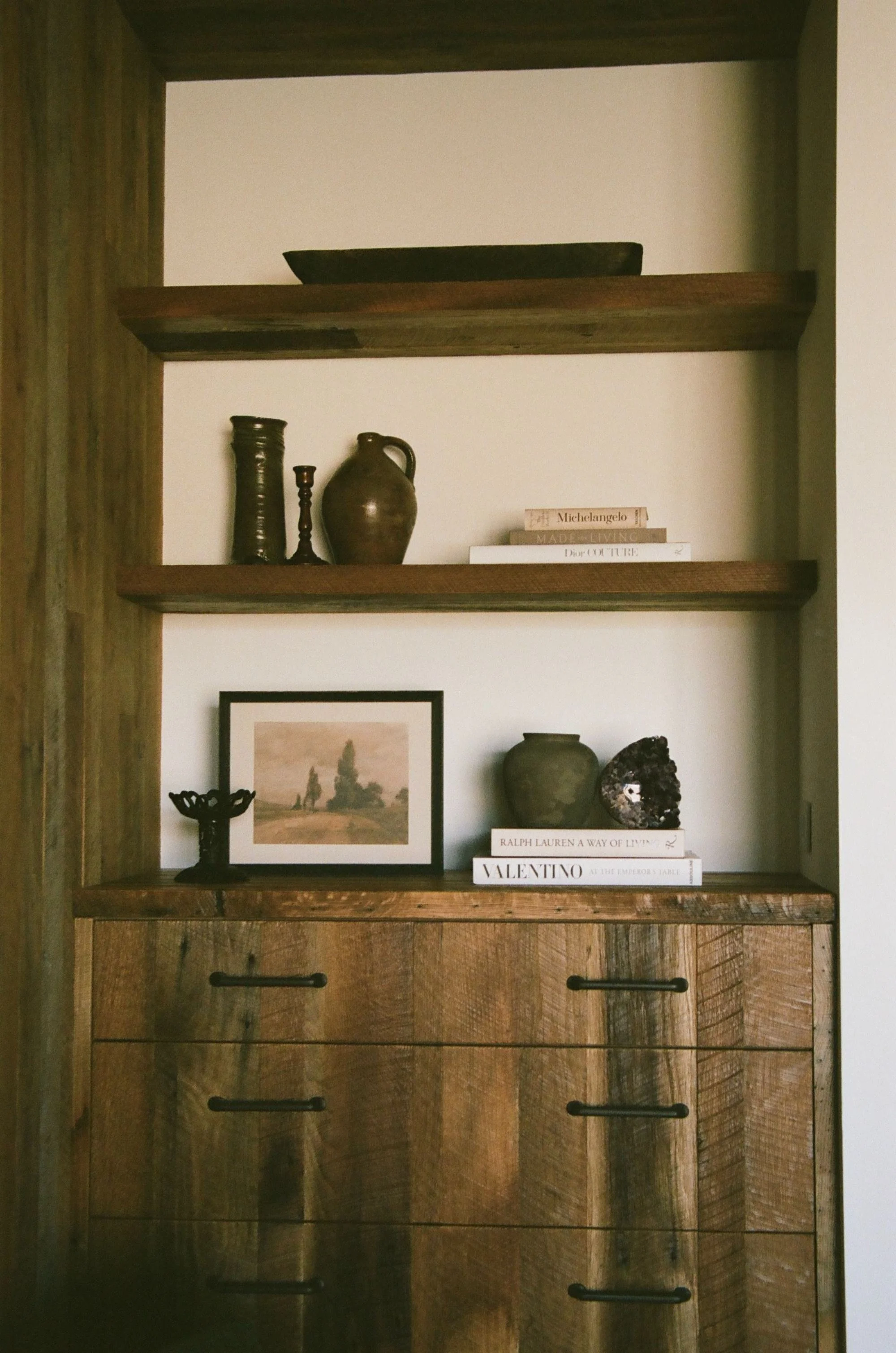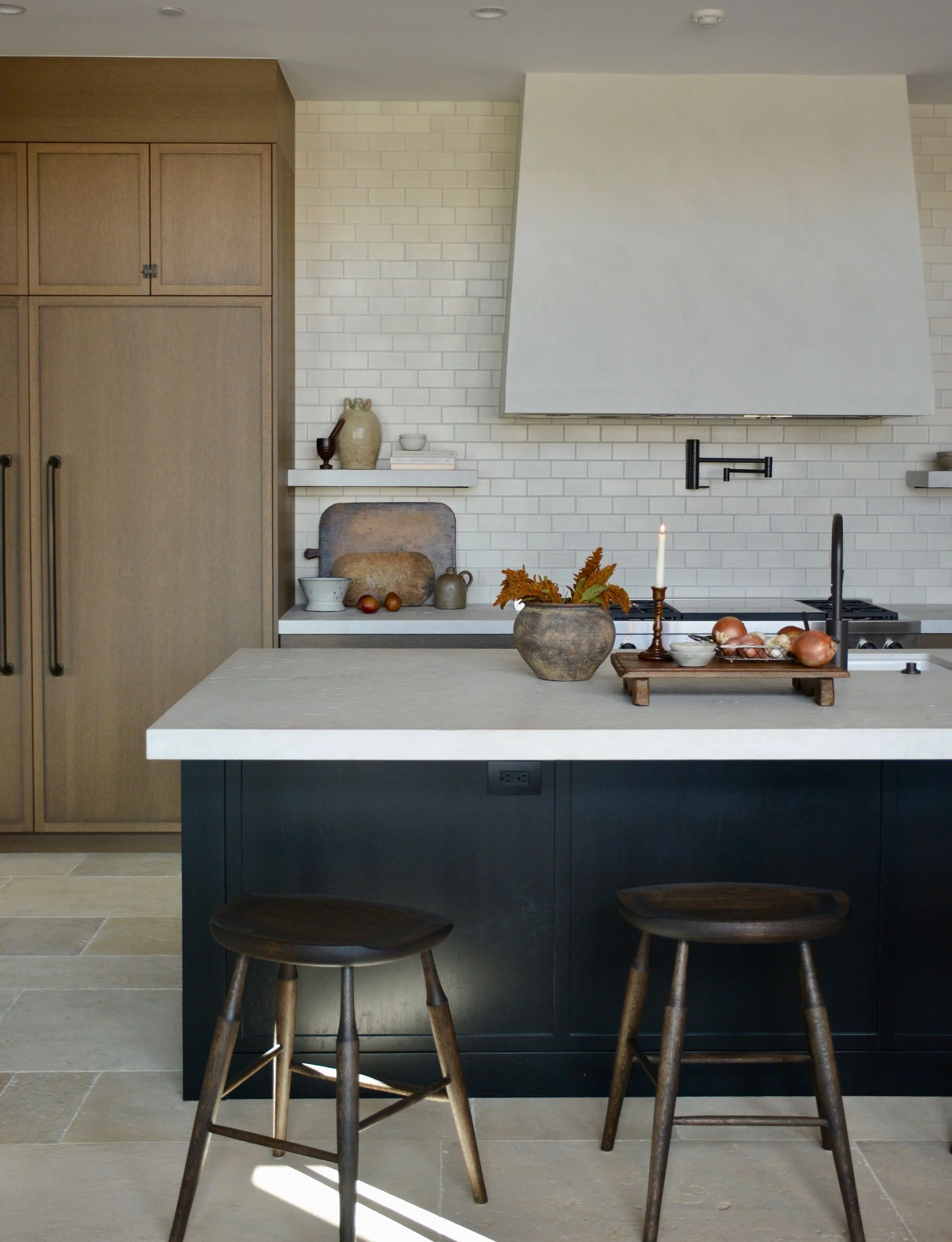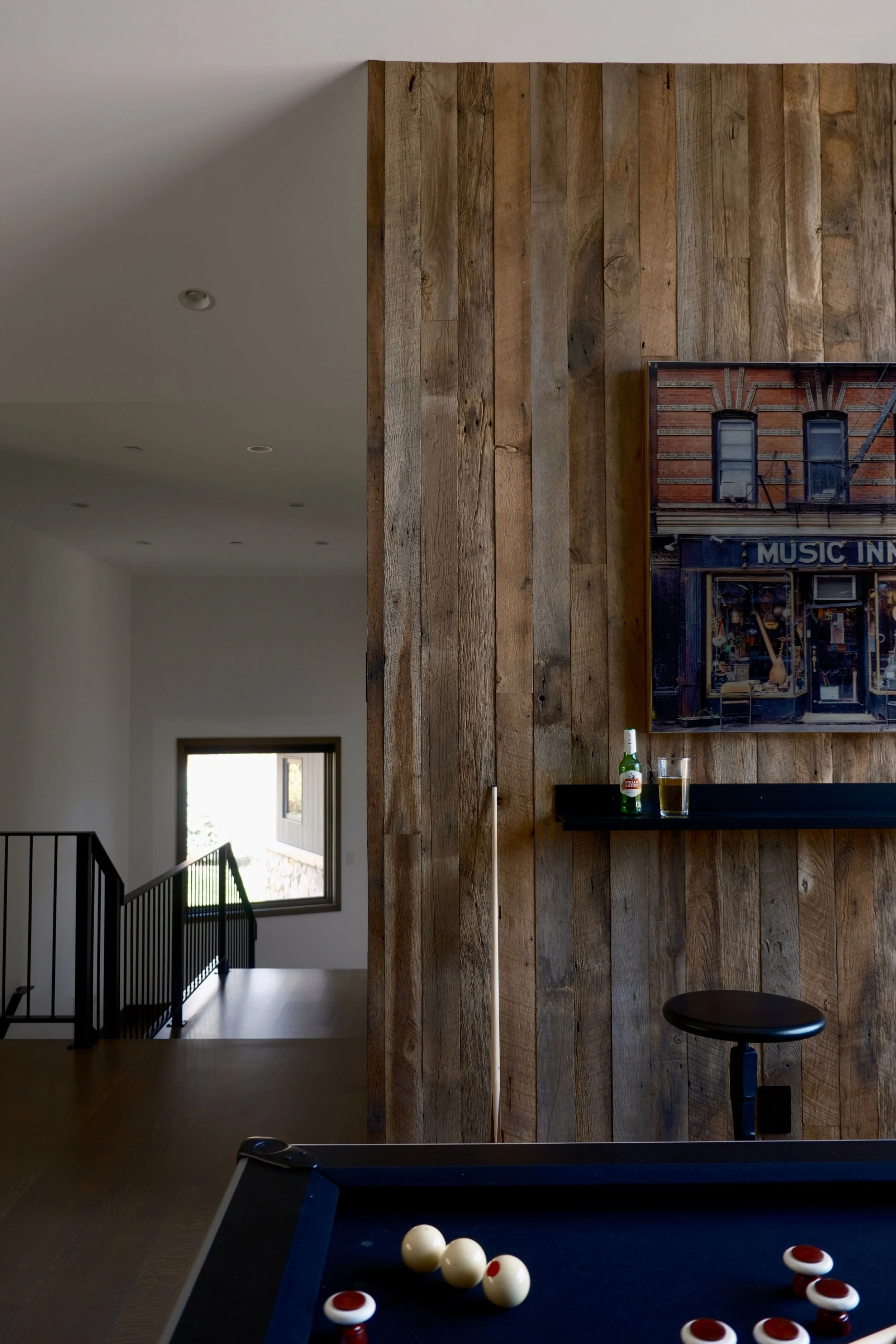 A ground-up, out-of-state mountain home designed from the earliest planning stages—collaborating with the architect to refine details and shaping every finish decision along the way. The goal was rustic modern: clean lines that still feel rooted in place, layered with warm woods, custom upholstery, and a curated mix of antiques shipped in to bring soul and character. Organic, touchable surfaces were key—stone and quartzite were artisan-treated and sandblasted for ridge-like texture that feels as if it was pulled straight from the surrounding landscape, creating a home that’s modern, durable, and unmistakably “of the mountains.”